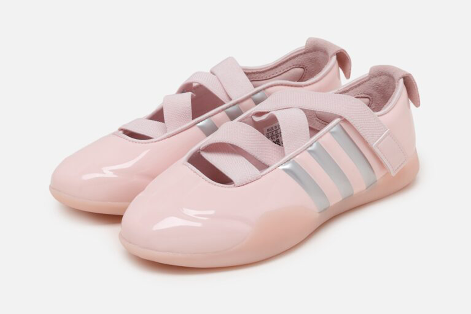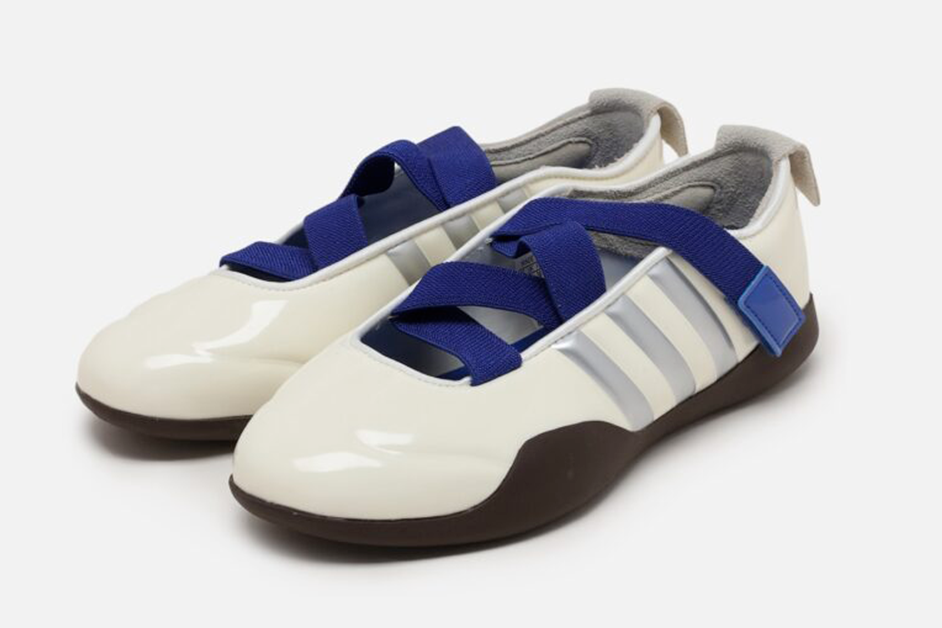 La collaboration entre la créatrice New-Yorkaise Caroline Hu et adidas réinvente la sneaker avec une touche de grâce et de romantisme. Connue pour son univers vaporeux et féminin, la créatrice apporte à la marque allemande une esthétique inspirée du ballet. Sa dernière création — une version revisitée de la adidas Taekwondo — se transforme en sneaker-ballerine, mêlant l’élégance d’un chausson de danse à la structure sportive d’une basket. Les brides élastiques croisées rappellent les rubans des ballerines, tandis que les teintes pastel (rose, crème, noir) et les finitions satinées accentuent le raffinement. Cette approche poétique, déjà esquissée dans ses Sambas en satin et à volants, brouille les frontières entre couture et streetwear, donnant naissance à des modèles à la fois délicats, audacieux et très mode. Disponibles au prix de 160€ courant octobre chez Naked.