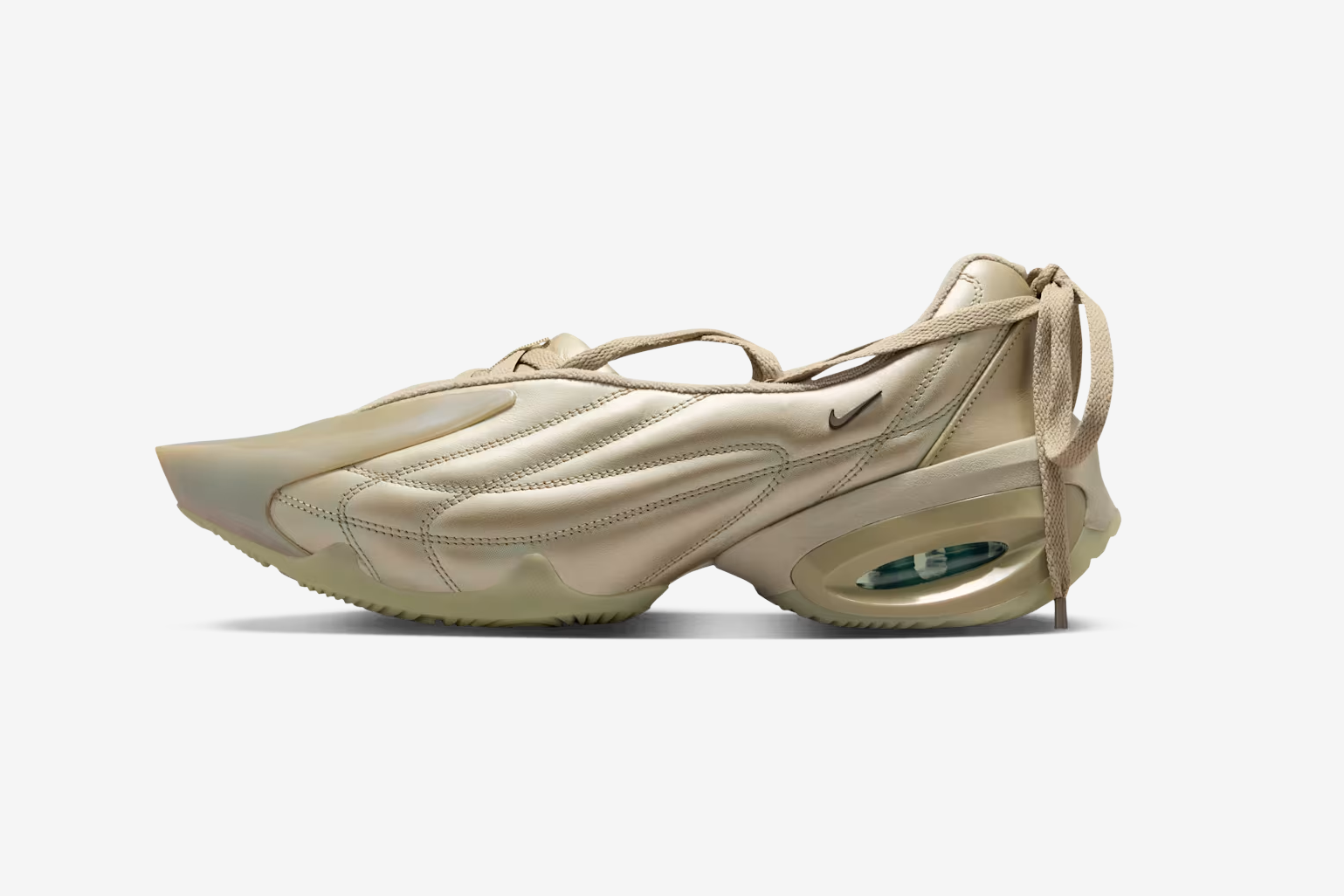 Pièce phare de la collaboration entre la marque londonienne KNWLS et Nike, la Air Max Muse Ballet incarne à elle seule la fusion entre performance et sensualité. Revisitée avec des lacets façon corset et une pointe marquée, elle combine des références au ballet classique, des accents de football vintage et les codes esthétiques de la “Raptor Boot” emblématique de KNWLS. Déclinée en trois coloris — Elemental Pink, Flat Spin et Black — cette silhouette joue sur les contrastes entre douceur et puissance, délicatesse et technicité, confirmant le savoir-faire des deux marques dans l’art d’allier style et fonctionnalité. Elles sortiront le 20 octobre sur le site de Nike au prix de 199,99€