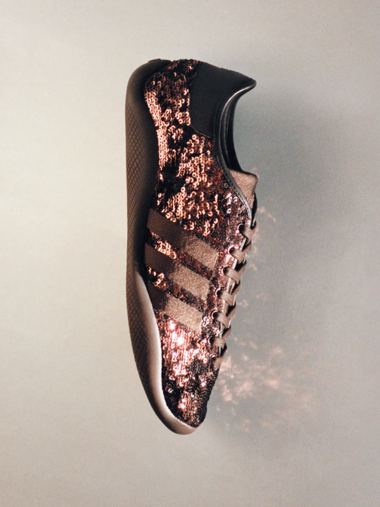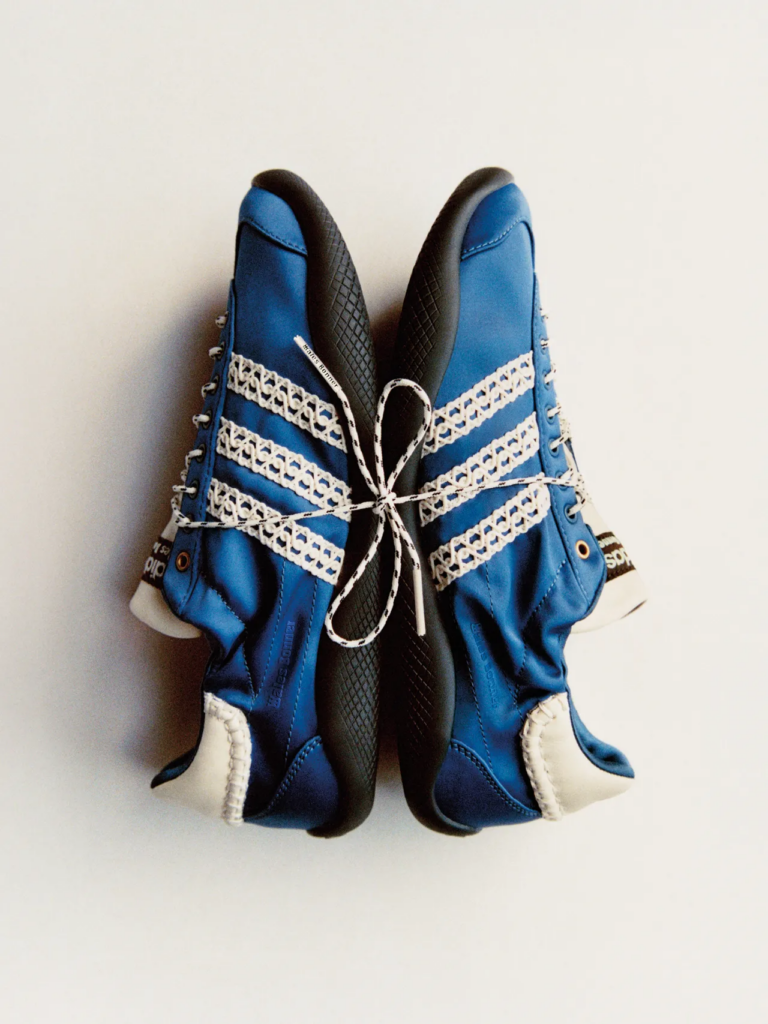 Le sac de bowling emblématique de Wales Bonner revient dans des proportions et finitions revisitées. Côté sneakers, la collection propose : la WB Karintha Lo en satin, les modèles WB Japan, WB Superstar et WB Adilette revisités avec des touches luxueuses.