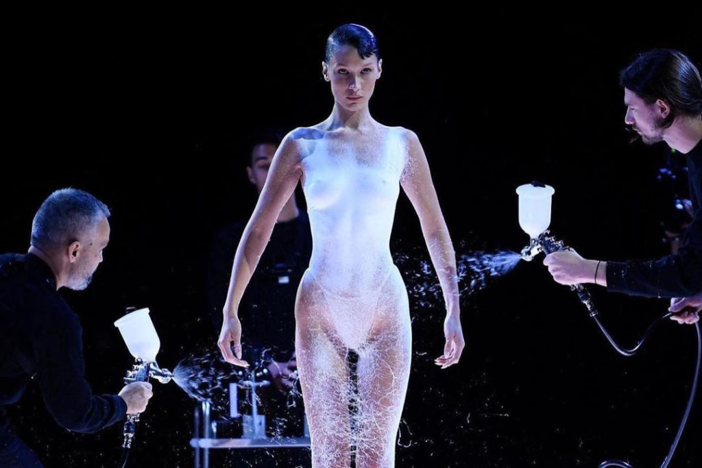 Derrière l’image forte de Bella Hadid en train de se faire concevoir une robe en direct, se cache une certaine hypocrisie.
