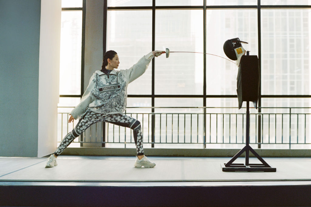 Après avoir annoncé un partenariat avec le spécialiste du sport Technogym avec tapis de course et équipements de musculation, Dior vient parfaire ce set avec une série de pièces qui collent à l’esthétique des sportives. Pour les illustrer la marque a choisi notamment l’ancienne joueuse du PSG Nadia Nadim comme visage de la collection « Dior Vibe ». La footballeuse suisse, réfugiée afghane et qui est l’une des stars du PSG, est rejointe par l’athlète grecque Athina Koini, la boxeuse somalienne Ramla Ali, l’étoile de l’opéra de Paris et Directrice du Ballet de l’opéra de Rome, Eleonora Abbagnato, ainsi que l’escrimeuse de l’équipe nationale chinoise Sun Yiwen.