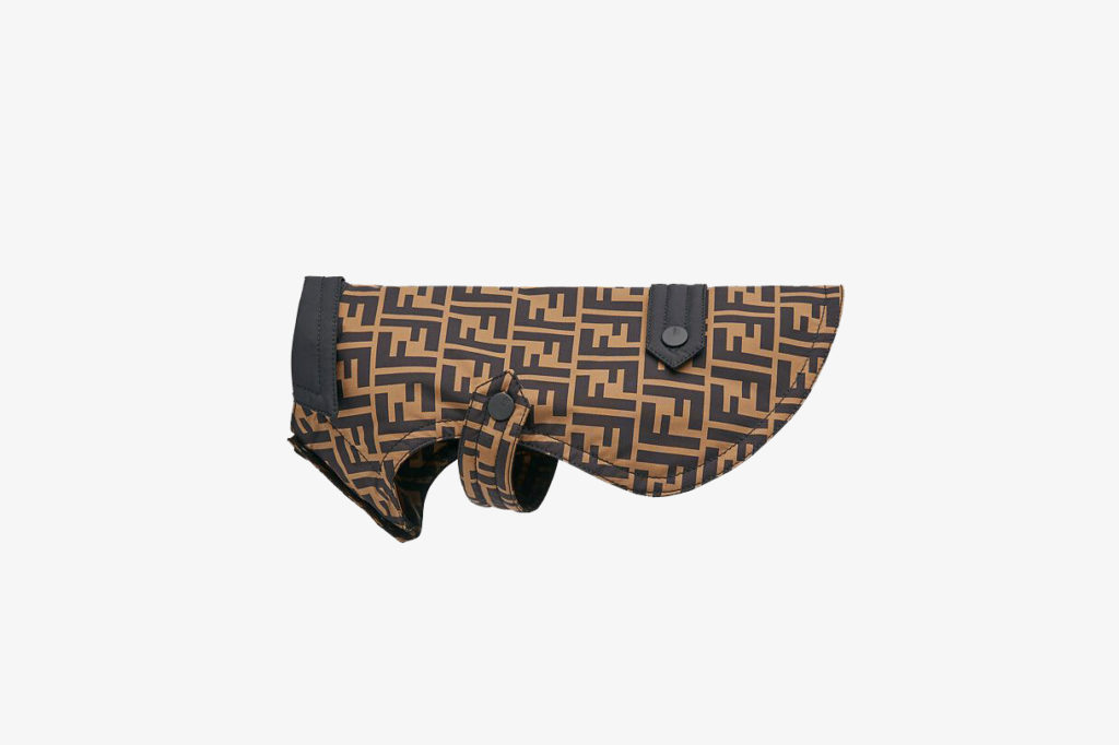 Composée de quatre articles de voyage cette gamme propose des pièces allant de 220 euros à 1980 euros. La plus onéreuse n’est autre qu’un petit cabas de voyage en tissus au monogramme « FF », accompagné d’une étiquette en cuir personnalisable. Un manteau hydrofuge en nylon, vient garnir ce vestiaire animal, en clin d’œil à une version disponible en prêt-à-porter. De quoi être assorti à son compagnon à quatre pattes. Enfin, vous retrouverez une laisse en tissu, ainsi qu’un collier accompagné d’une plaque métallique personnalisable. La collection est disponible dès maintenant sur l’e-shop de FENDI.