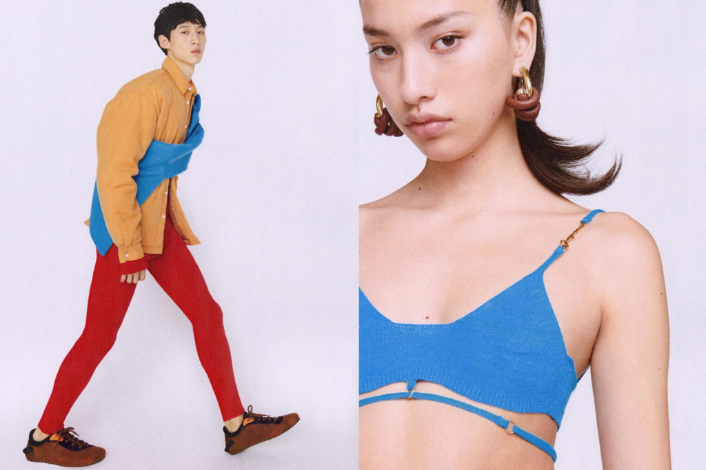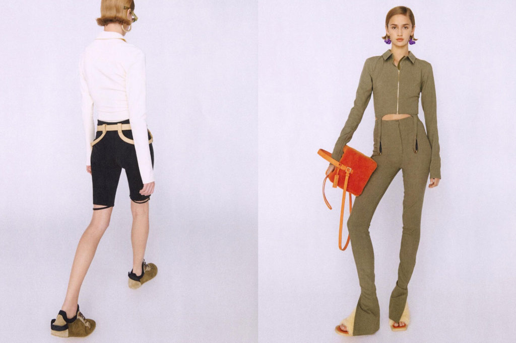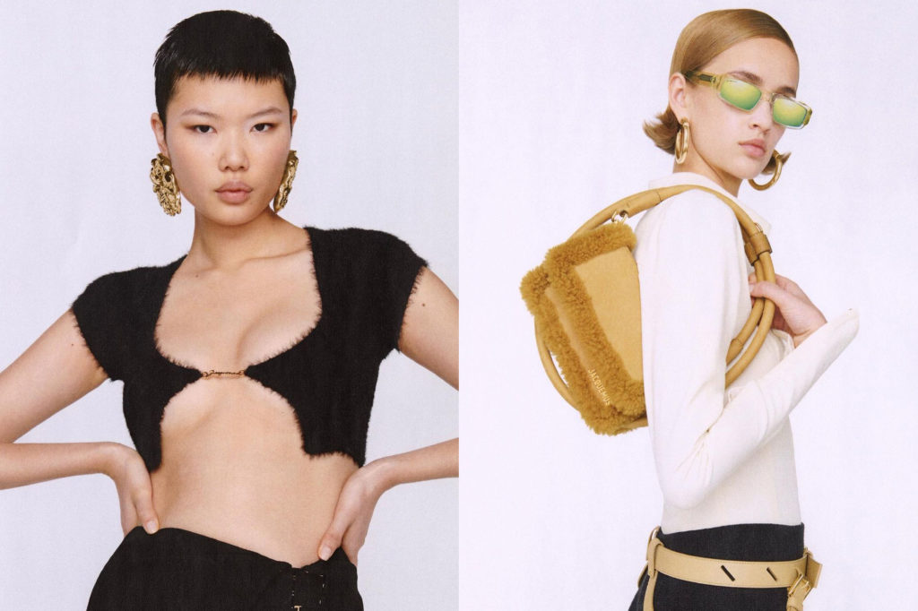 Ce nouveau drop présente une série de pièces qui nous sont légèrement familières. On y retrouve le cardigan duveteux à manche courte, préféré des influenceuses, arborant une couleur noire. À cela, s’ajoutent des ensembles aux tons olive et marron clair ainsi qu’un top blanc et un cycliste gris chiné que la modèle porte avec un harnais beige par dessus. Jacquemus a mis un point d’honneur sur les accessoires comme à son habitude avec de nouveaux coloris de son célèbre chapeau « Le Bob » ainsi qu’une série de sacs surdimensionnés composée d’une mallette molletonnée orange vif ou encore d’une banane XXL bleue. Découvrez l’ensemble des looks du dernier drop de Jacquemus dans la galerie ci-dessus. Les pièces sont disponibles dès maintenant sur le site du créateur.