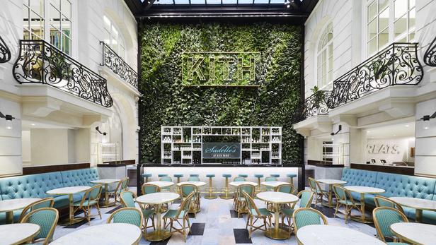 C’est dans l’ancien hôtel du Pershing Hall, que KITH Paris a décidé de s’installer, dans le triangle d’or du 8ème arrondissement de la capitale. Un restaurant qui servira un brunch, ouvrira au coeur de la boutique dès que les conditions sanitaires le permettront. Pour la décoration, un mur végétal signé Les Jardins de Babylone, a été installé derrière le comptoir donnant des allures de cours intérieure. En revanche pour éviter la cohue KITH Paris fonctionnera sur réservations. Pour cela vous pouvez vous rendre sur le site eu.kith.com qui va bientôt proposer des créneaux de visite.