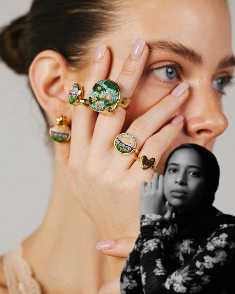 Fatma Mostafa est une créatrice égyptienne basée au Caire, diplômée des Beaux‑Arts, qui conçoit des bijoux inspirés de la peinture, de la photographie et de la broderie. Ses pièces, souvent réalisées à la main, évoquent des paysages et textures organiques, mêlant artisanat traditionnel et sensibilité contemporaine, et sont reconnues à l’international comme de véritables œuvres d’art portables.