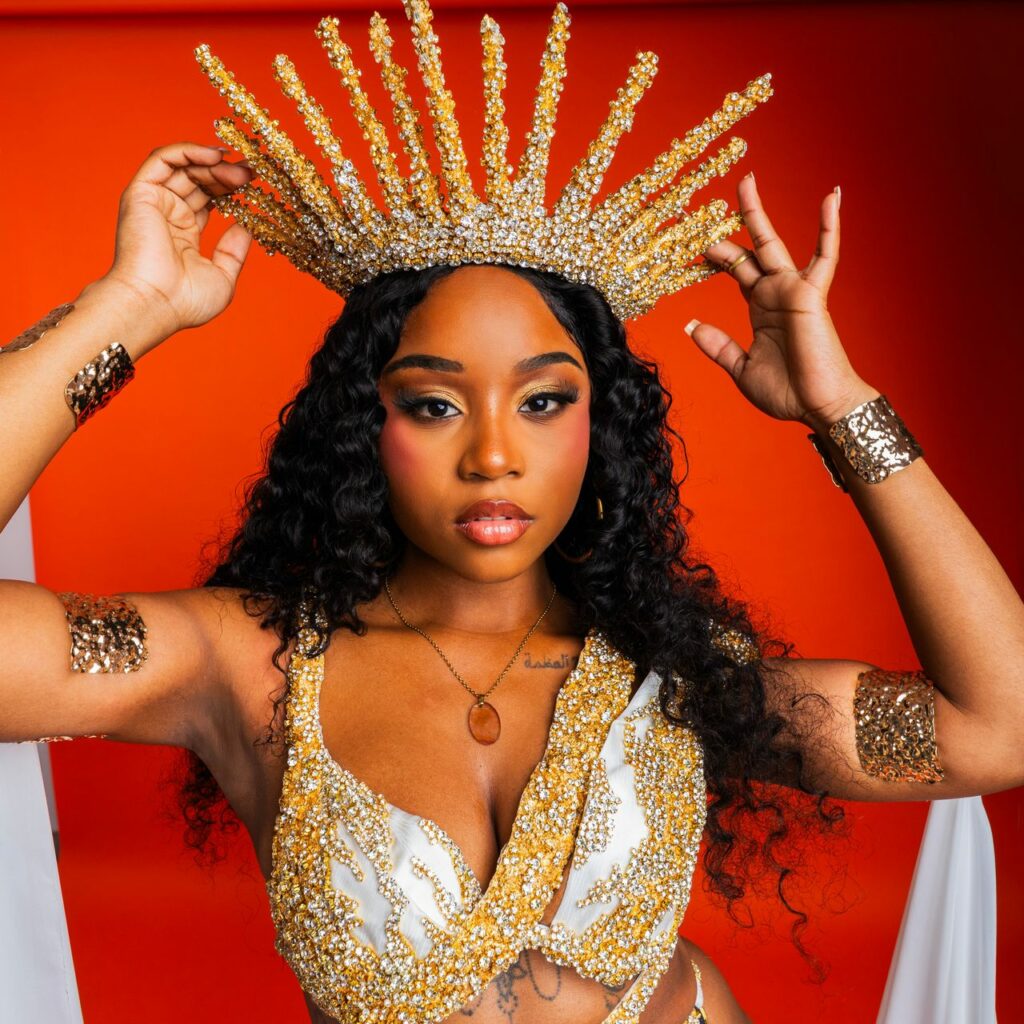 26 ans, et déjà tout un royaume à ses pieds. En 2019, Maureen, jeune artiste originaire de la Martinique, fait l’effet d’une bombe avec « Flex », puis quelques mois plus tard avec « Tic », deux titres de shatta, un genre qu’elle a popularisé en dehors des Antilles, faisant même marcher Bella Hadid au rythme de ses punchlines lors de la Fashion Week. Nominée aux BET Awards dans la catégorie « meilleur nouvel artiste international » en 2023, lauréate du « meilleur titre caribéen » lors des Flammes la même année, Maureen raffle tout sur son passage. En 2024, elle sort son premier EP, « Bad Queen », qui la propulse directement en haut des charts, comme l’une des artistes martiniquaises les plus écoutées au monde. Devenue maman depuis, elle vient de sortir son tout premier album, sobrement intitulé « Queen », dans lequel elle nous fait autant danser que réflechir, en osant aborder des sujets complexes comme la santé mentale, le consentement ou la maternité. Recontre avec une artiste engagée, aussi solaire que révoltée.