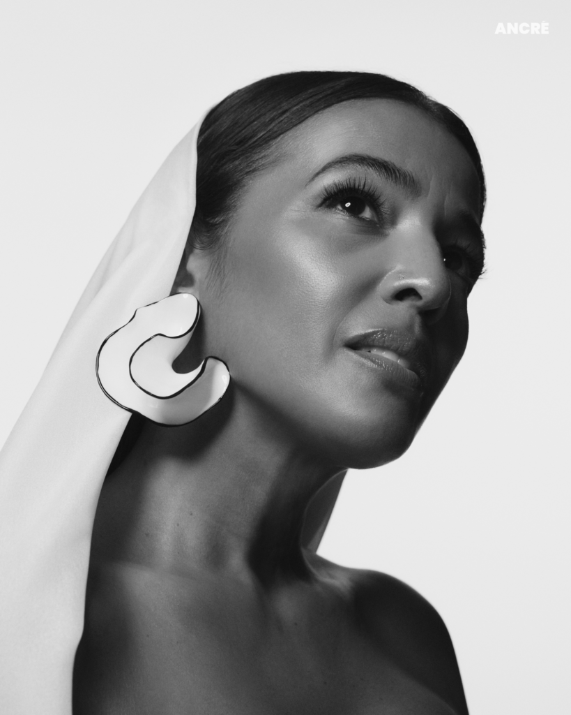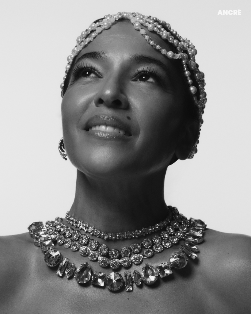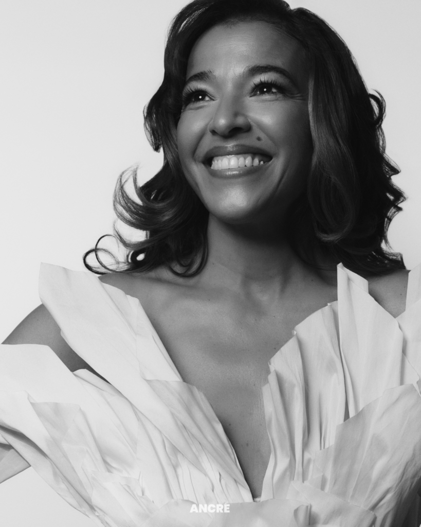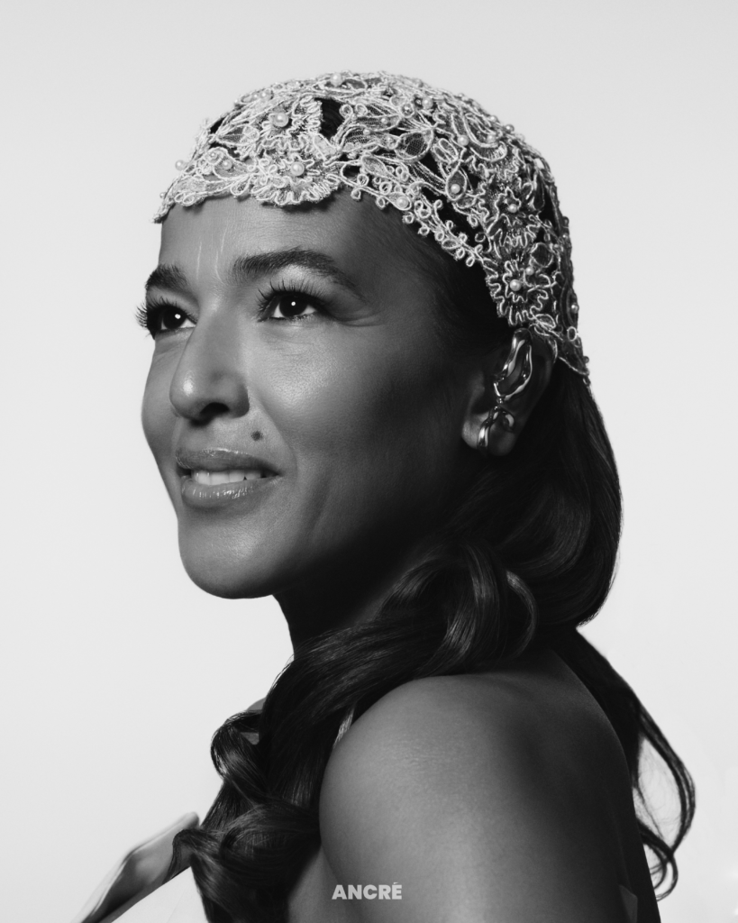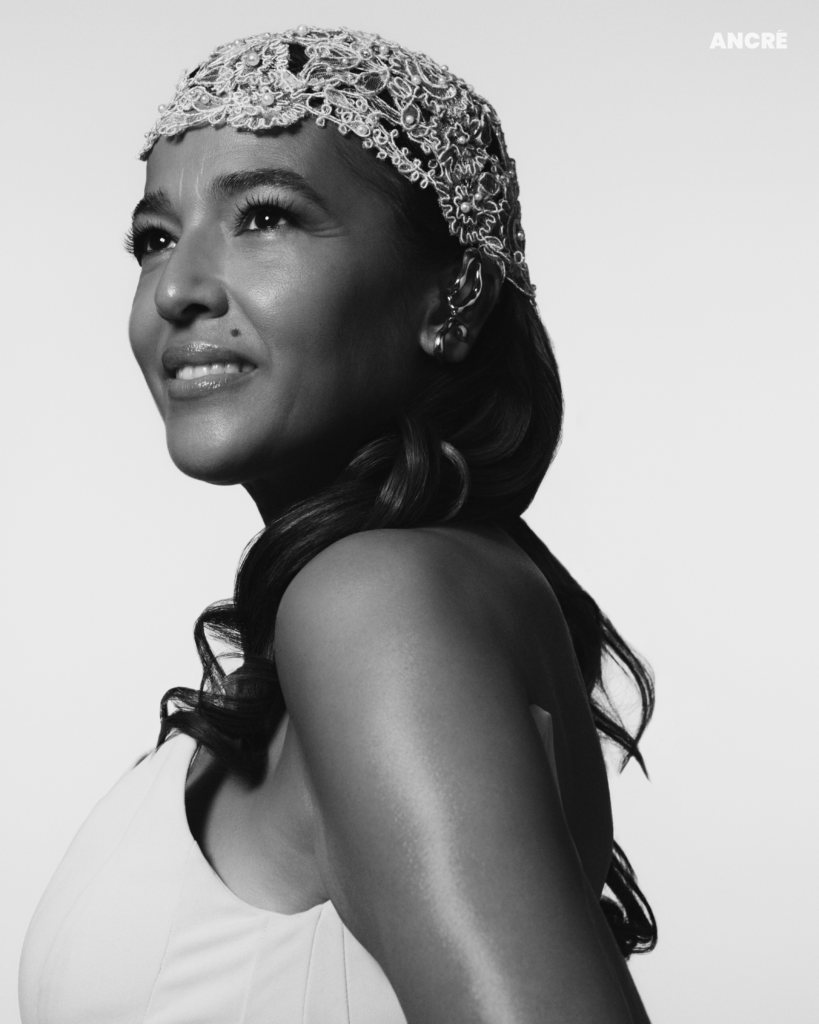 “En arabe, Nâdiya veut dire « celle qui appelle et dont la voix porte loin » ». Pour nous, Nâdiya, c’est aussi le synonyme des tubes de notre enfance. “Parle moi”, “Roc”, ou encore “Et c’est parti…”, au début des années 2000, impossible d’allumer la radio sans entendre sa voix. Alors, quand elle nous tend la main en arrivant au studio photo, on se dit qu’on va enfin percer le mystère. Car si elle a façonné le paysage médiatique, elle a aussi été, pour les femmes des années 90, un visage racisé — une exception à l’époque. Et pourtant, malgré sa présence constante, on n’a jamais vraiment su qui elle était. Parce qu’à l’époque on ne regardait pas YouTube, il fallait tomber sur une de ses interviews télé pour comprendre qu’elle était maman d’un petit garçon tout en menant sa carrière, ou qu’elle était l’une des rares à qui Ardisson n’a jamais osé faire de blague sexiste. Pourquoi ? La réponse se trouve déjà dans la poignée de main qu’elle nous serre en arrivant : ferme, assurée, fière.