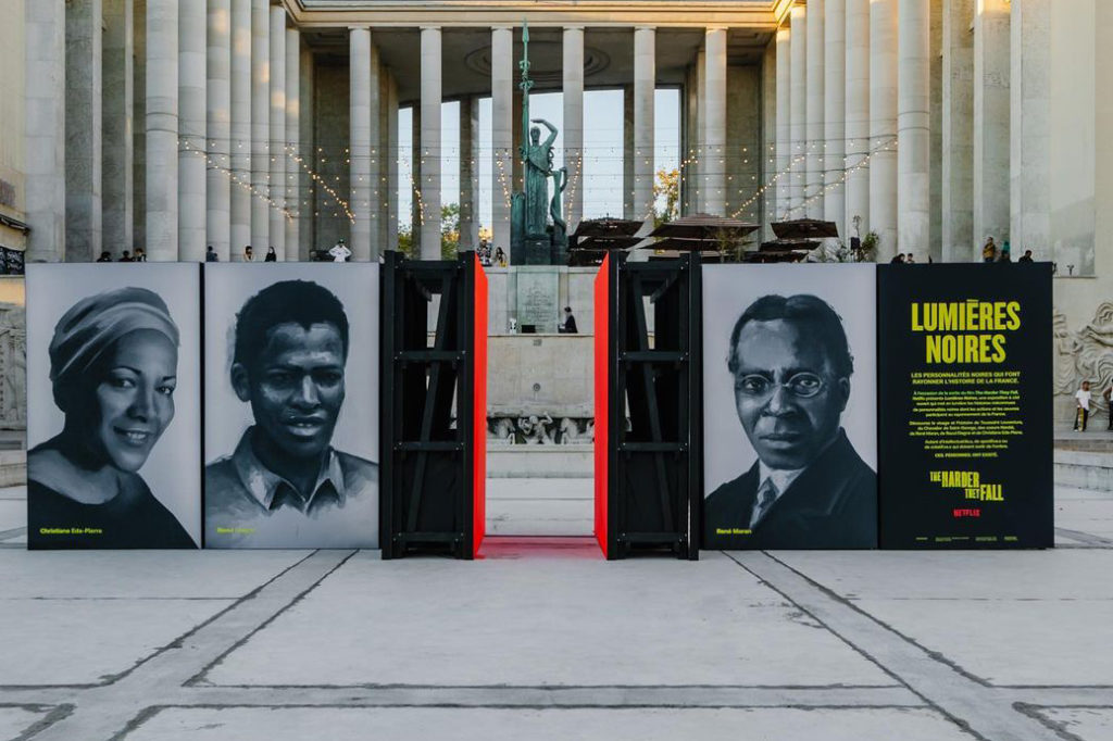 À l’occasion de la sortie du film « The Harder They Fall », un western produit par Jay-Z et mettant en scène les cow-boys noirs oubliés de l’Histoire, Netflix France a investi le parvis du Palais de Tokyo à Paris pour rendre hommage et mettre en lumière des personnalités noires et françaises, elles aussi oubliées des livres. Intitulée « Lumières Noires », cette exposition temporaire et gratuite, dresse les portraits de septs figures noires de l’Histoire de France. Sur de larges panneaux, les visages des sœurs Nardal, de Raoul Diagne, de René Maran, de Toussaint Louverture, de Christiane Eda-Pierre et du Chevalier de Saint George s’affichent en noir et blanc cote à cote. L’occasion de découvrir les histoires et les rôles que chacun ont joué dans la construction de la France.
