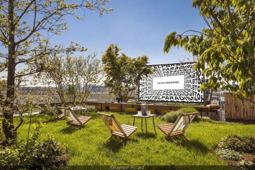 Né en 2021, le Mk2 Hôtel Paradiso représente le mélange parfait entre un rooftop et un cinéma plein air. Installé dans un transat confortable, vous pourrez visionner un film, accompagné de pop-corn bio ou autres snacks sucrés et d’un cocktail vitaminé. Ce rooftop propose un bar à cocktails et des petits encas tels que des hot-dogs, des salades bien garnies mais aussi des donuts et des glaces onctueuses. Un endroit agréable qui plaira aux passionnés de cinéma.