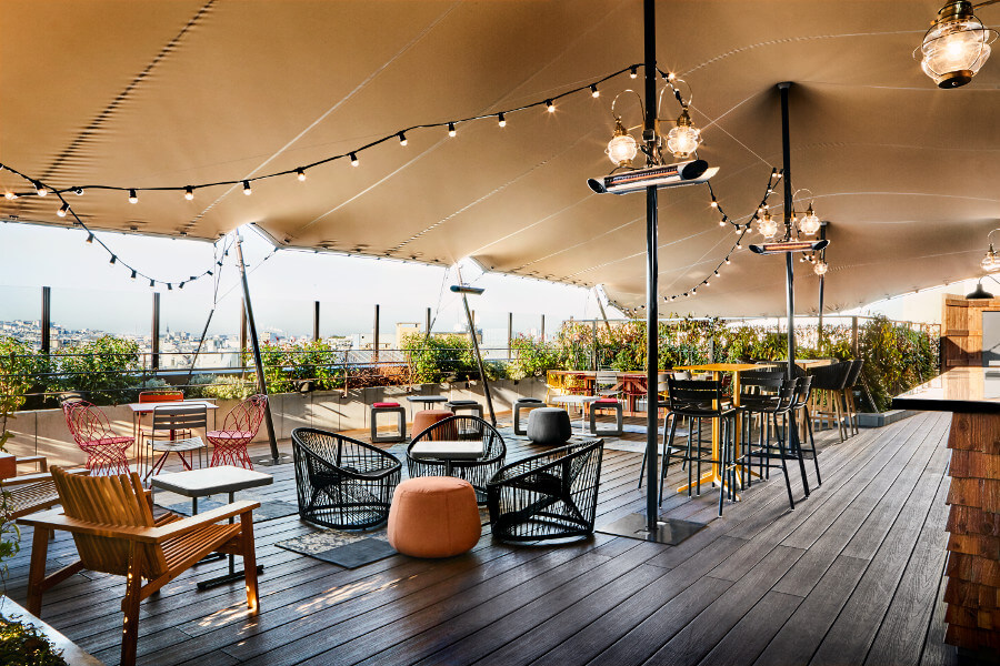 Mama Shelter, c’est LE rooftop pour passer un bon moment, sans prise de tête. Niveau cuisine, ils misent sur des recettes simples mais généreuses, certifiées « fait-maison ». L’endroit est connu pour son barbecue proposé en fin de soirée, mais il existe également des alternatives végétariennes et des plats conçus spécialement pour les enfants. Grâce à sa table de ping-pong, vous pourrez défier vos amis et vous amuser. La décoration est très cosy avec des canapés confortables, des poufs, des coussins et des plaids qui vous permettront de vous reposer, et de vous détendre.