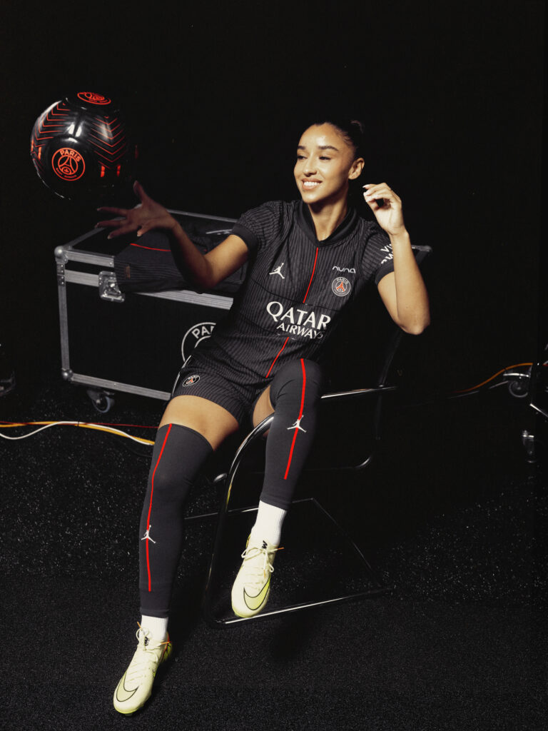 Le Paris Saint-Germain et Jordan Brand dévoilent le quatrième maillot du Club pour la saison 2025-2026, et rendent hommage à l’identité de la ville de Paris, entre grâce et performance. Décliné pour l’équipe masculine et féminine, le maillot s’inspire en effet des ateliers de couture parisiens, et fait le lien entre la précision du jeu des sportifs et celle du geste des artisans de la capitale. Noir, rythmé par des teintes de gris anthracite, des nuances de rose, et une ligne centrale rouge, le jersey mise sur le « chic à la française » et la sobriété. “Du col élégant jusqu’aux coutures apparentes, chaque détail a été pensé pour conjuguer élégance et technicité,” précise d’ailleurs un communiqué, qui nous apprend que la technique Cross-Dye a été utilisée pour la première fois afin de renforcer le caractère premium des maillots.