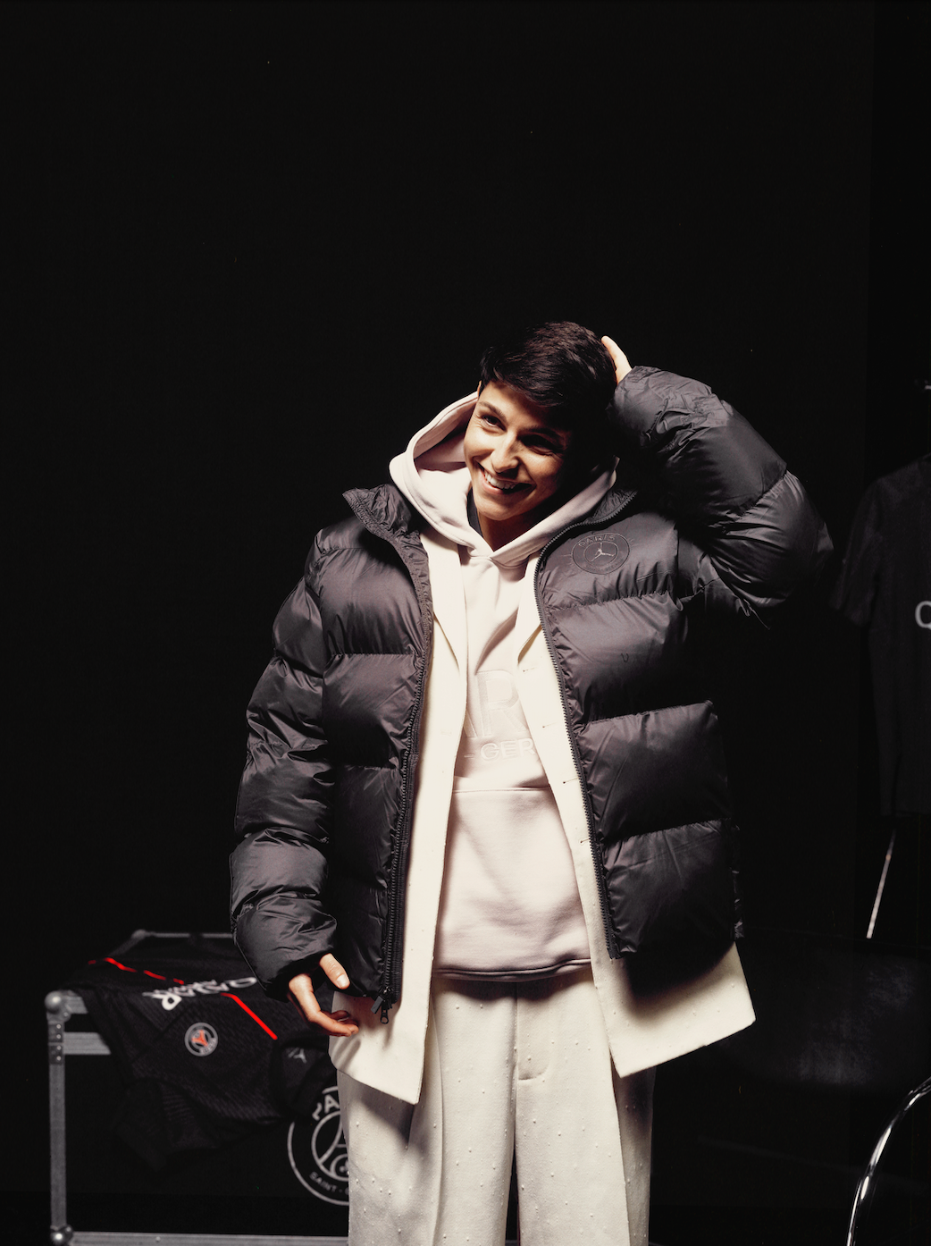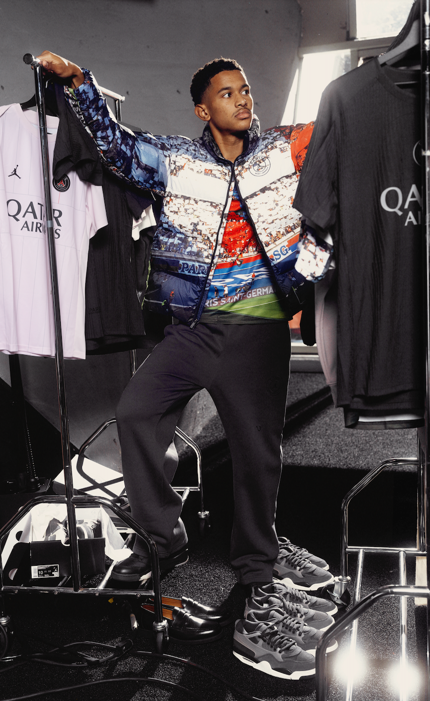 Si le maillot est la star de cette collaboration entre Jordan et le PSG, les deux mastodontes du sport en profitent pour dévoiler une collection supplémentaire. Tenues d’entraînement, silhouettes pré-match, looks sportswear… Chaque pièce est une ode à la culture PSG. En témoigne la Air Jordan Parka qui célèbre l’énergie du Parc des Princes, en imprimant directement une photo des gradins sur le textile.