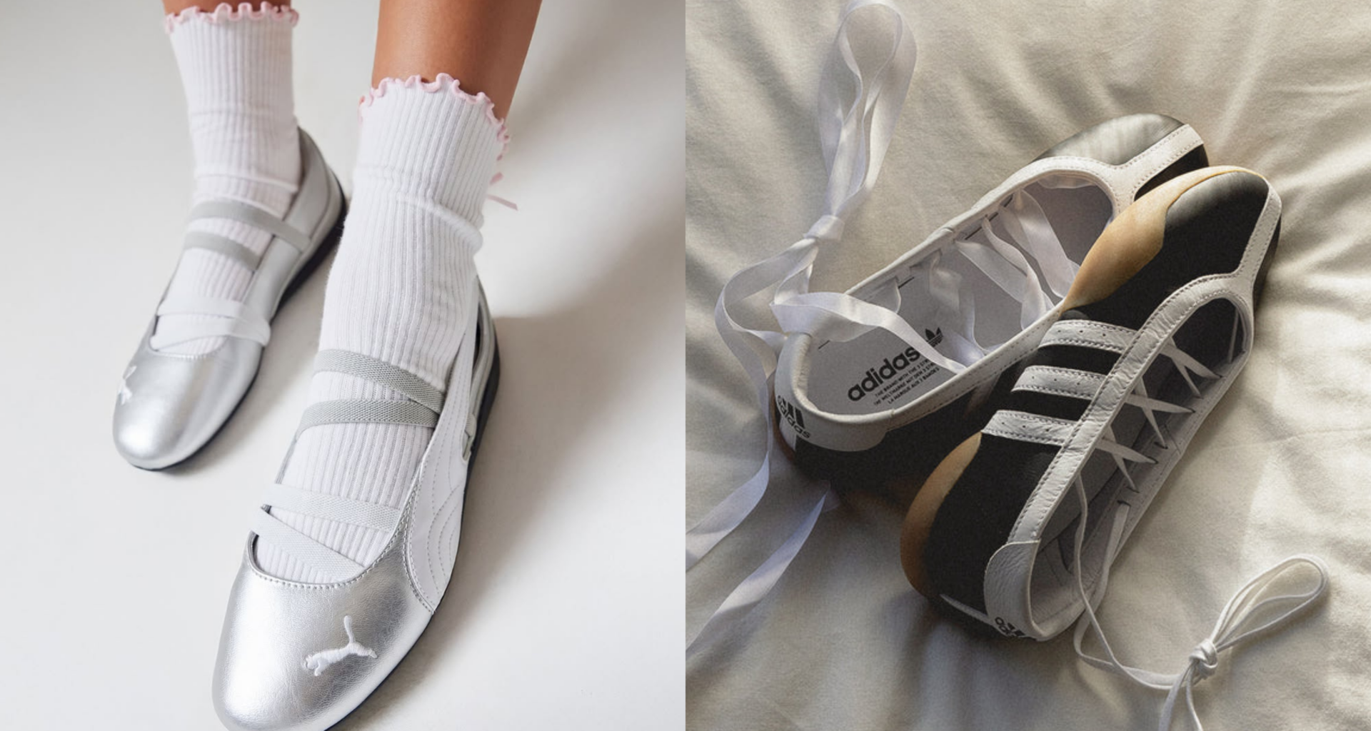 Plus que jamais, la ballerine inspire les marques de sport à créer des modèles hybrides, entre sneakers et chaussures féminines.