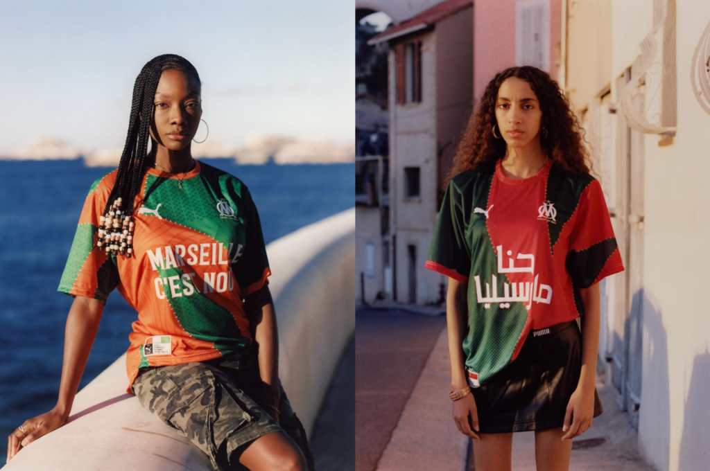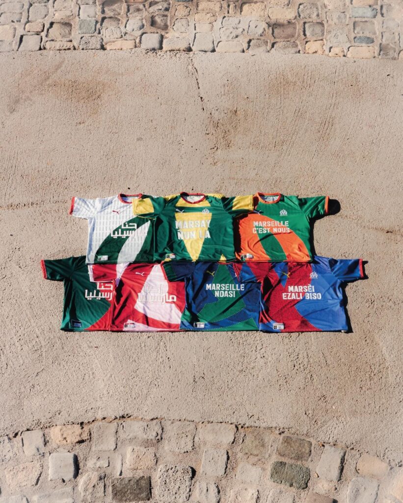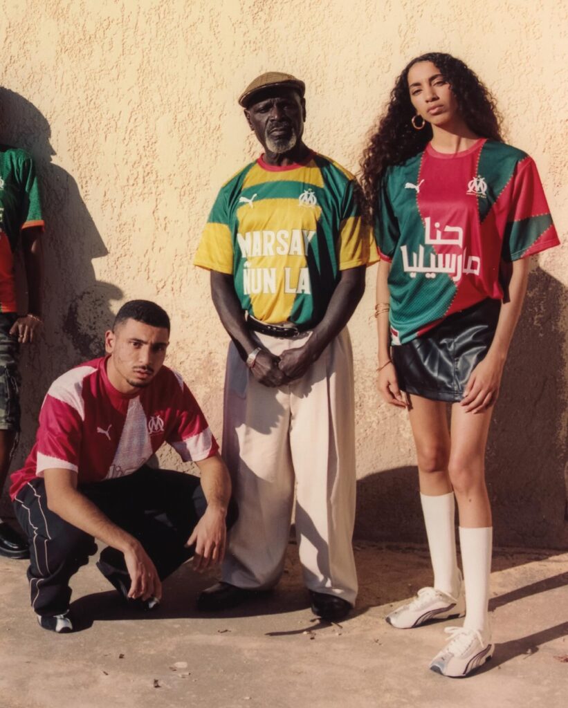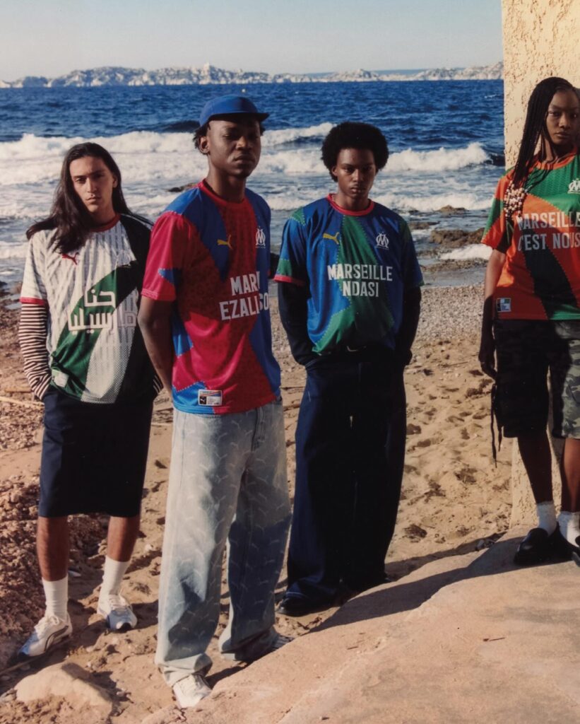 Fabriqué en France, l’ensemble tient non seulement à mettre en lumière la richesse culturelle de Marseille, mais aussi à rappeler l’ancrage territorial du club historique de la ville, que Puma soutient depuis des années. « Avec cette campagne, nous avons voulu rendre hommage à la diversité de la ville de Marseille afin de permettre aux supporters d’origine africaine de célébrer leurs racines tout en se retrouvant unis derrière le blason de leur club, » explique Thomas Lanis, directeur marketing de Puma France. Ainsi, si chacun des maillots reprend les couleurs et la langue du pays qu’il représente pour y décliner le message « Marseille c’est nous ». Et lorsqu’on les assemble à la manière d’un puzzle, les maillots révèlent un « OM » XXL. Un double-message que l’on retrouve également dans la campagne visuelle, shootée par l’artiste d’origine comorienne Izudin Yusuf et mettant en scène des figures locales dans quelques uns des lieux les plus emblématiques de la ville.