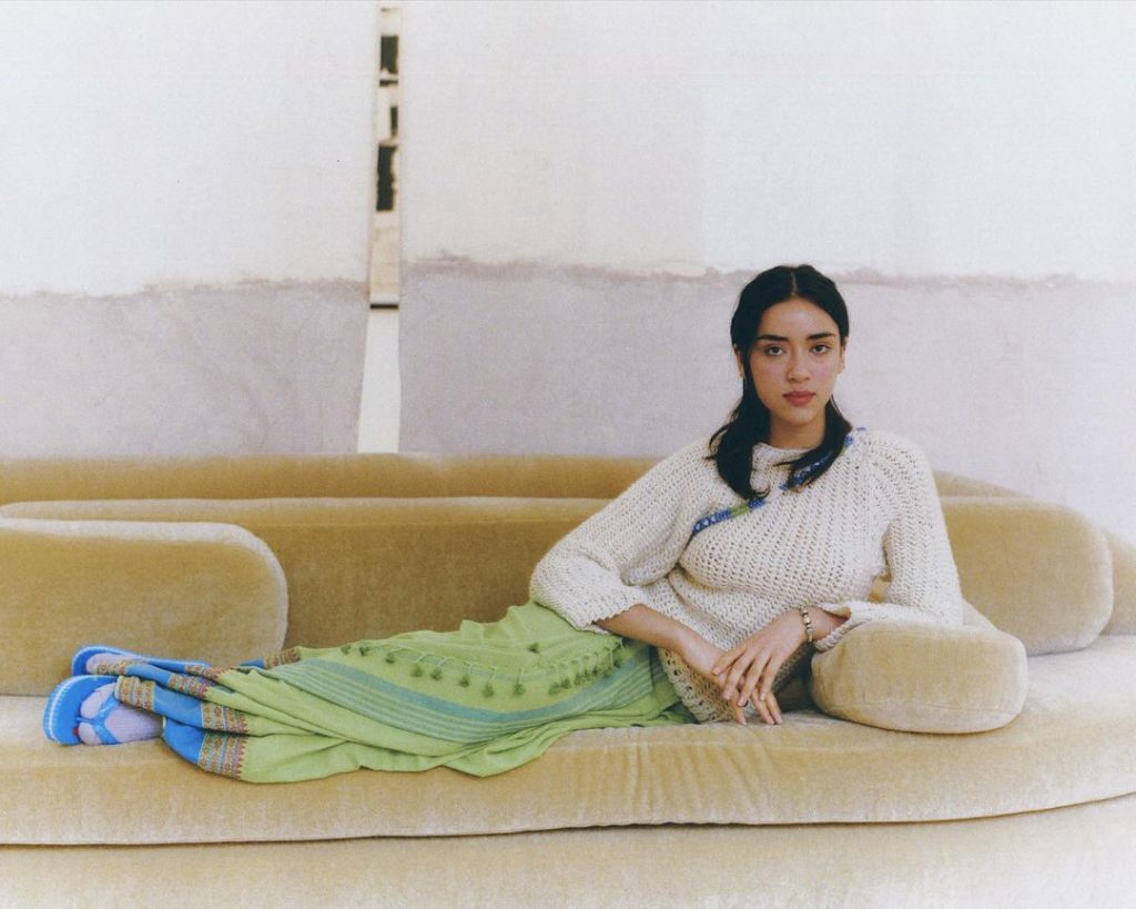 La maille est une passion qui m’est venue de mon arrière grand mère qui passait ses journées à tricoter. Lors de mes études de design textile, j’ai étudié les techniques de tissage, d’impression et de maille. La maille était une évidence car je la trouvais moins explorée que les autres. Il y a une multitude de possibilité, c’est une technique qui tend vers le futur du textile car elle permet de créer des formes directement en sortant d’une machine. La maille est une industrie peu présente en Inde c’est la raison pour laquelle je trouvais cela intéressant que les premières pièces soient créés à partir de cette technique.