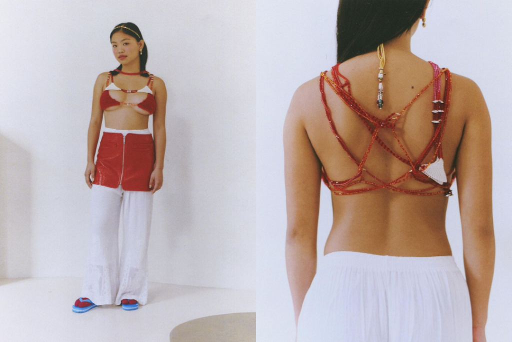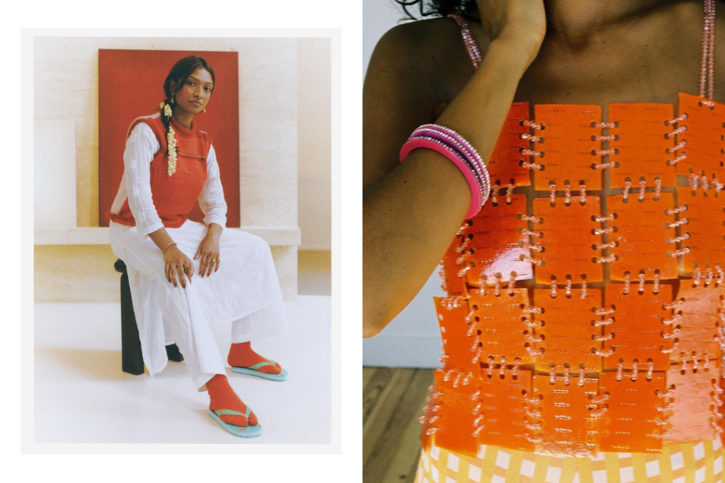 Charlotte Chowdhury, créatrice de RESCHA : Rescha est né de mon besoin d’exprimer mon héritage franco-indien, de l’envie de raconter ce monde imaginaire dans lequel deux pays ne font qu’un. La question de l’identité a toujours été au centre de mon travail et de mes recherches. Au fil du temps, il est devenu essentiel pour moi d’être reconnue pour ma mixité. Je cherchais donc à incarner ce positionnement dans mes tenues : le choix des couleurs, des textures, des tissus. Créer des vêtements qui permettent de percevoir cette double identité est alors devenu une évidence.