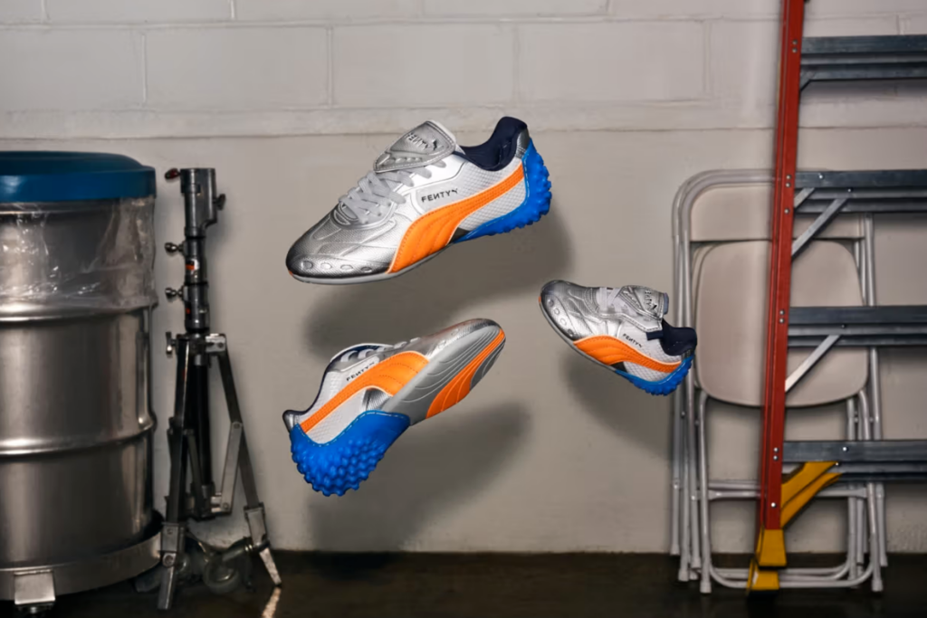 Rihanna et PUMA unissent à nouveau leurs forces avec une collection inspirée du football, mêlant énergie sportive et allure urbaine. Les pièces reprennent les codes du terrain — coupes amples, matières techniques, touches métalliques — pour les transformer en véritables objets de mode. Les FENTY Slides reviennent avec une semelle crantée façon crampons et de la fausse fourrure sur l’empeigne, tandis que la sneaker AVANTI LS-X modernise l’héritage sportif de PUMA avec un design futuriste.