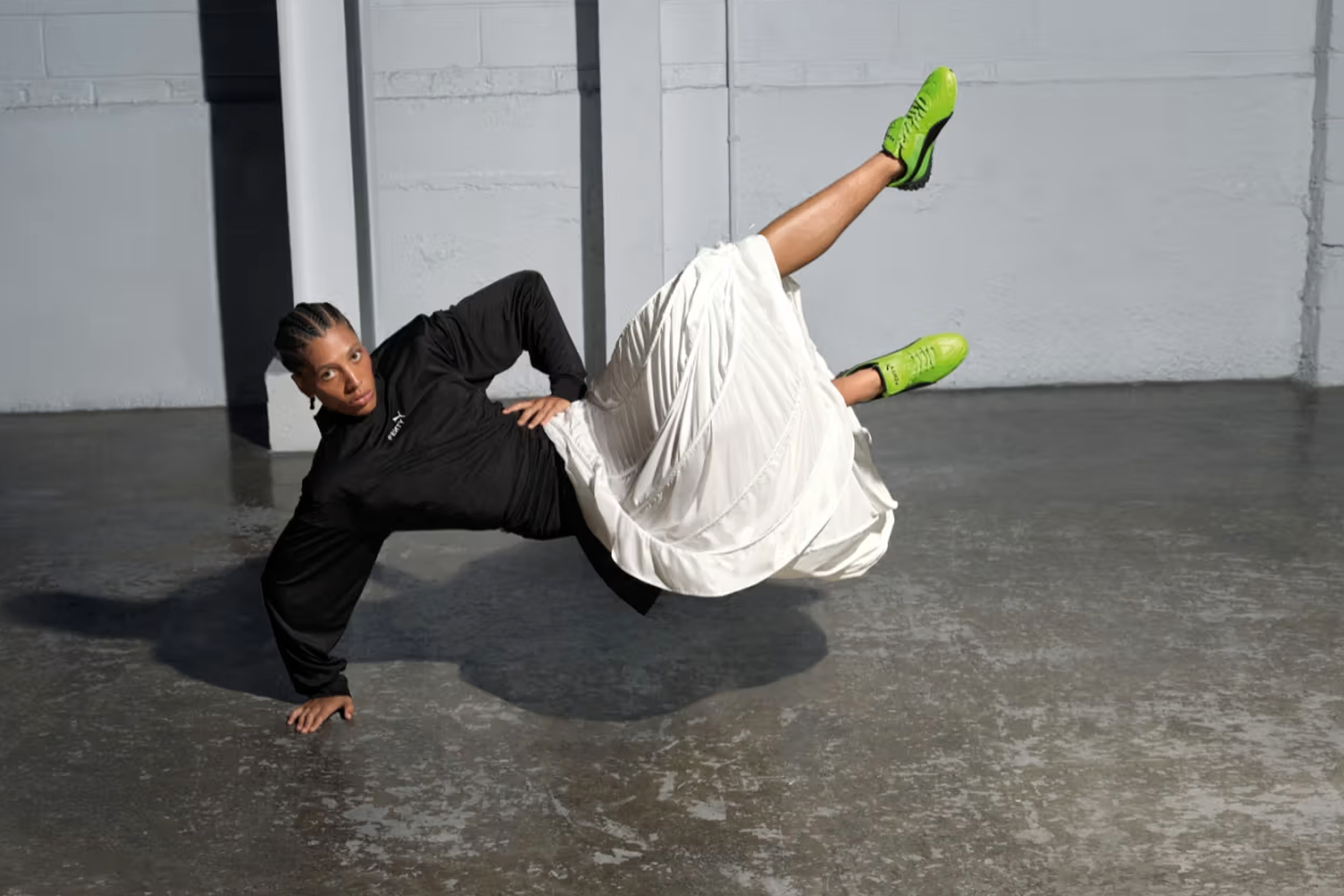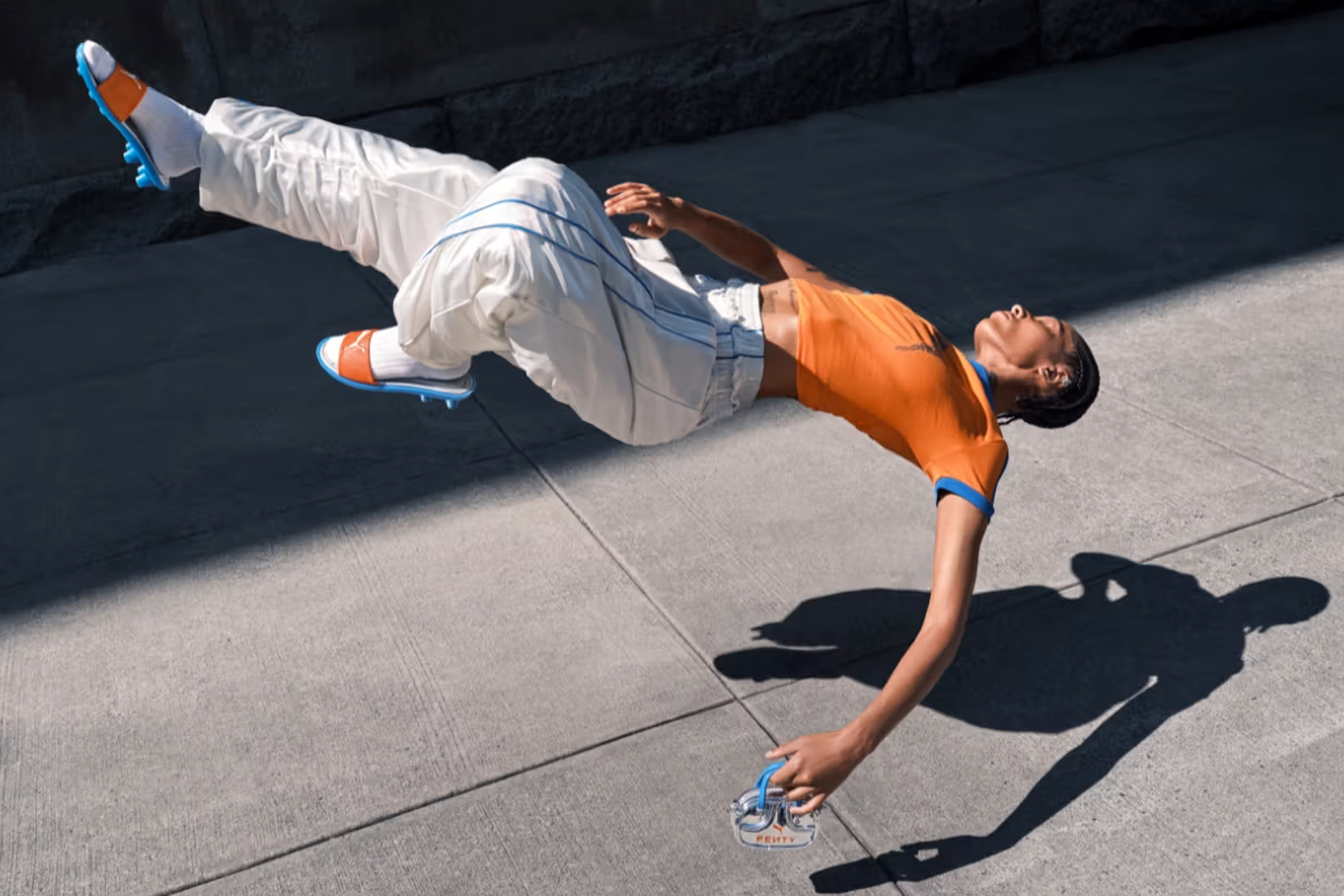 Côté vêtements, on retrouve un ensemble de survêtement oversize, un maillot de gardien revisité et des min-sacs. Photographiée par Yiskid et stylisée par Soki Mak, la campagne capture mouvement et liberté — les valeurs chères à Rihanna.