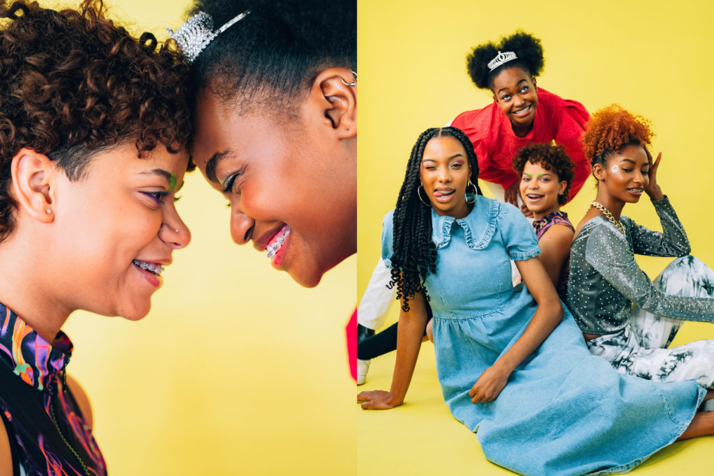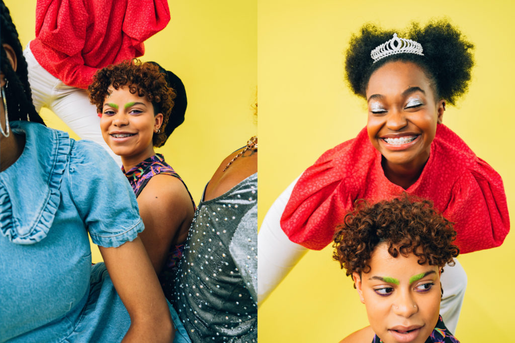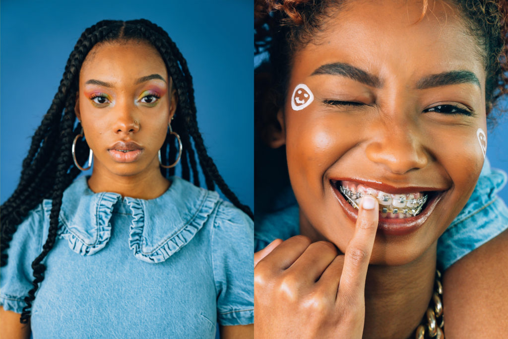 Diffusée au début des années 2000 sur Teletoon, le dessin animé « Sourire d’enfer » a inspiré cet éditorial avec la forte envie de décomplexer les bagues. Dans une époque où on nous enjoint à cacher nos sourires derrière les masques, il semblerait que dans un autre temps, on ai plus que jamais envie de montrer nos dents, même quand elles sont gantées de fil de fer. En lançant un casting sur notre compte Instagram pour ce shooting photos mettant en lumière les appareils dentaires, quelle belle surprise de constater qu’elles ont été une petite dizaine à vouloir donner du smile. Certaines n’auront pas pu se rendre disponibles sur les dates, d’autres auront eu leurs bagues retirées entre temps, et c’est donc avec une joyeuse troupe de quatre jeunes femmes que nous avons allumé les ring light et les soft box pour faire plein phare sur la féraille.