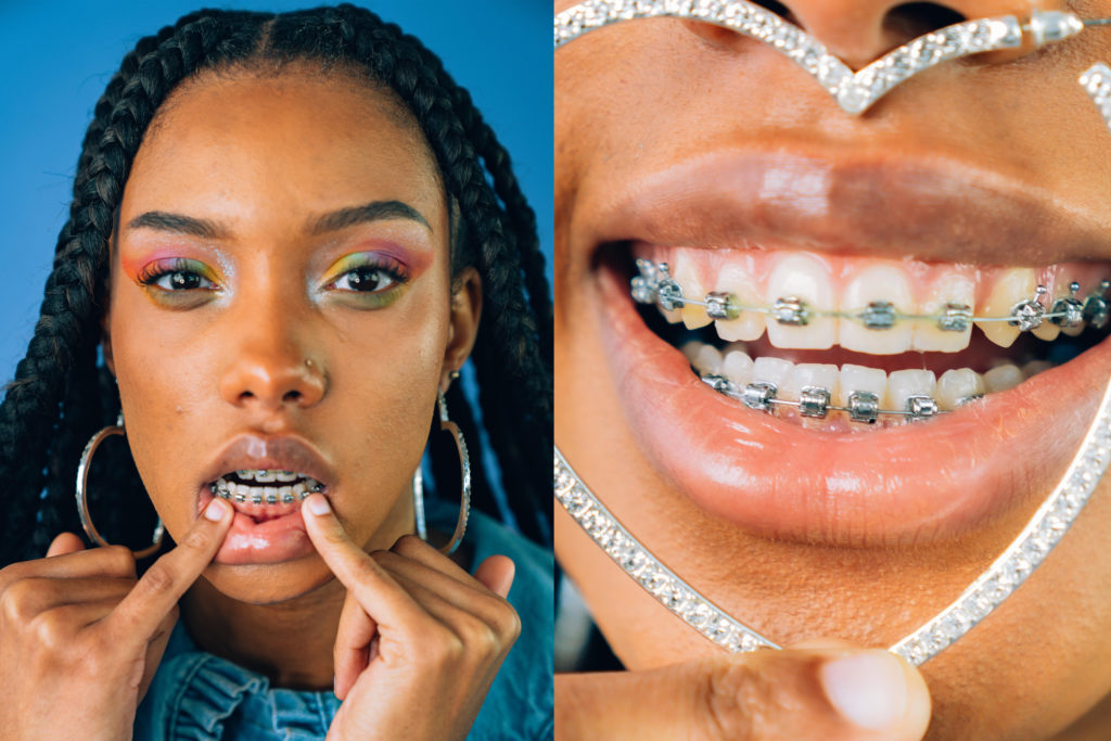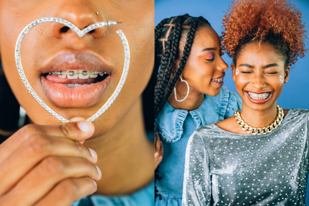 Sans se connaitre, mais avec un point commun au moins : celui d’avoir un sourire d’enfer, @Pearloilam, @saratou_ms, @zeroesthetic et @dweetyitsme prennent la pose dans cet éditorial où l’appareil dentaire prend des allures de grillz.