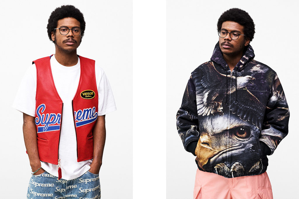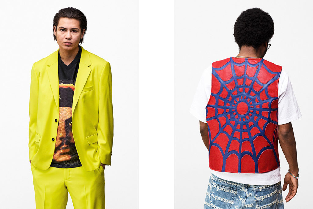 Autre pièce phare de cette collection Supreme, un gilet reprenant les couleurs de Spiderman et affichant dans son dos la toile d’araignée du super héros. Une veste de type Motorsport reprenant les couleurs d’un paquet de Malboro se démarque également dans ce lookbook. La collection sortira sous forme de drop tout au long de la saison, avec un premier arrivage le 18 février prochain sur le site de Supreme.