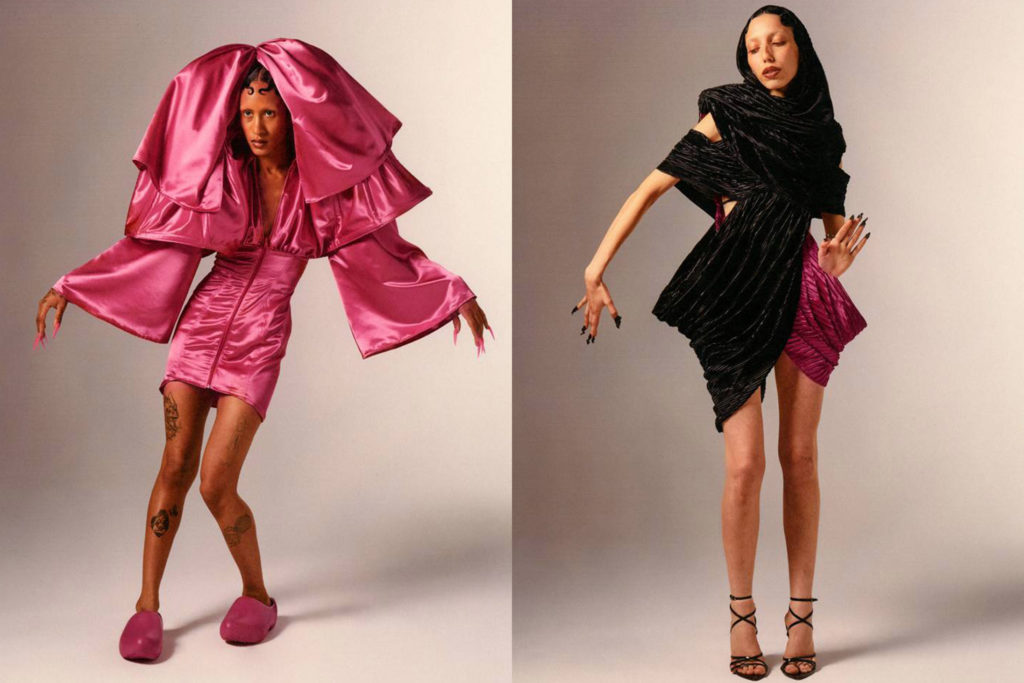 À l’occasion de la Fashion Week parisienne, le jeune designer Victor Weinsanto, formé chez Jean-Paul Gaultier, a dévoilé sa collection Printemps/Été 2022 une heure avant la présentation de Marine Serre. Au sein d’un hôtel particulier de la rue des Francs Bourgeois, le créateur aux cheveux roses a présenté sa troisième collection intitulée « Hopla Geiss », expression venue d’Alsace que l’on pourrait traduire par « Allez, c’est parti ! ». Un spectacle gravitant donc autour de ses racines alsaciennes, dévoilé devant près d’une centaine d’invités tels que le duo d’EgonLab, la drag queen Nicky Doll ou encore Jacquemus. Le designer de 27 ans a choisi de mêler pièces de théâtre et numéro de cirque pour honorer cette nouvelle collection inclusive.